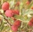Copious early season pink flowers, green bronze leaves, red fruit.