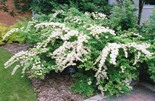 This shrub has gracefuil arching branches that are covered in white flowers in June