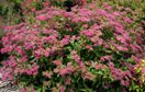 A compact spreading spirea with copious cherry-red flowers and blue-green foliages that turns bronze in the fall